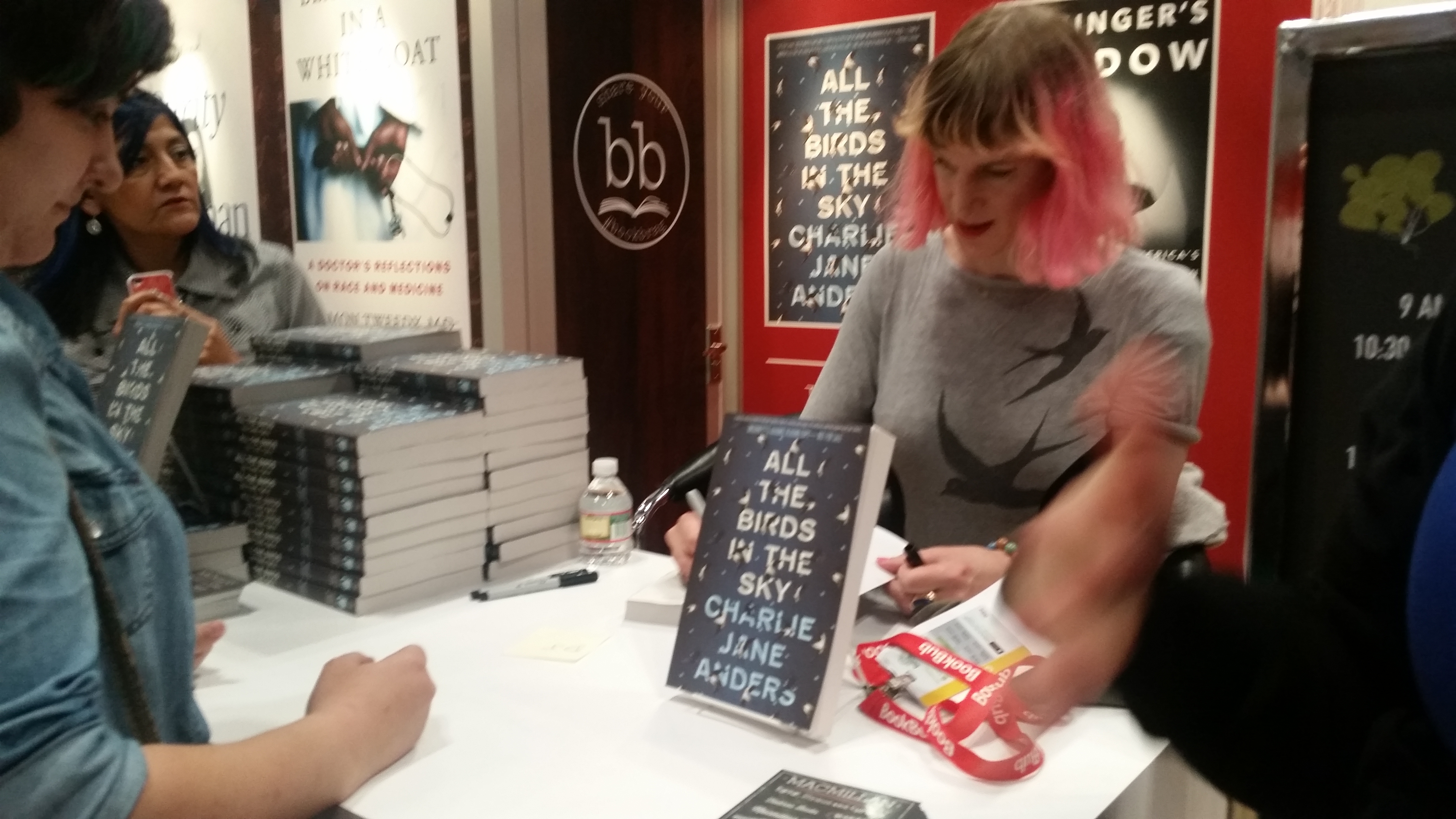 My crazier signings for the day were for MacMillan of course; I was really excited about All the Birds in the Sky by Charlie Jane Anders, Last Song Before Night by Ilana Myer, and Everybody Rise by Stephanie Clifford (this one was a drop). Other than I was very excited that I got to meet Wendy Higgins, author of Sweet Evil! I have loved and supported her series since day one so I was very excited to finally meet her and tell her how awesome she is ❤