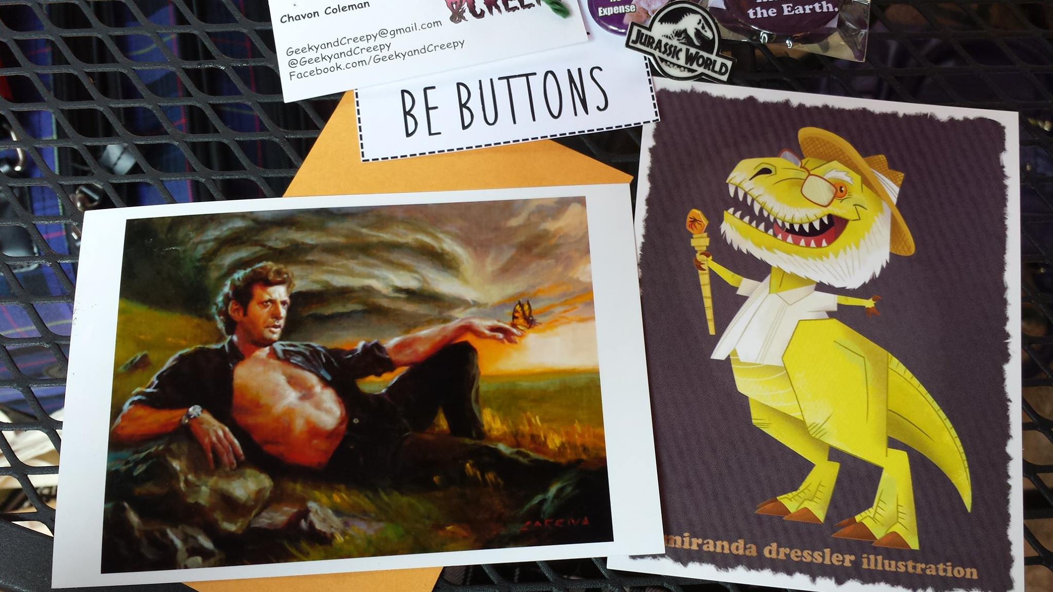 As I need to lurk in the shadows sit in the shade due to my vampirism pale skin I snagged Des & I seats at the table near the front with Jamila (aka @girl_gone_geek) who was sporting a lovely pink shirt covered in Jeff Goldblum swagger (he played Dr. Ian Malcolm in the 1st & 2nd movies).
